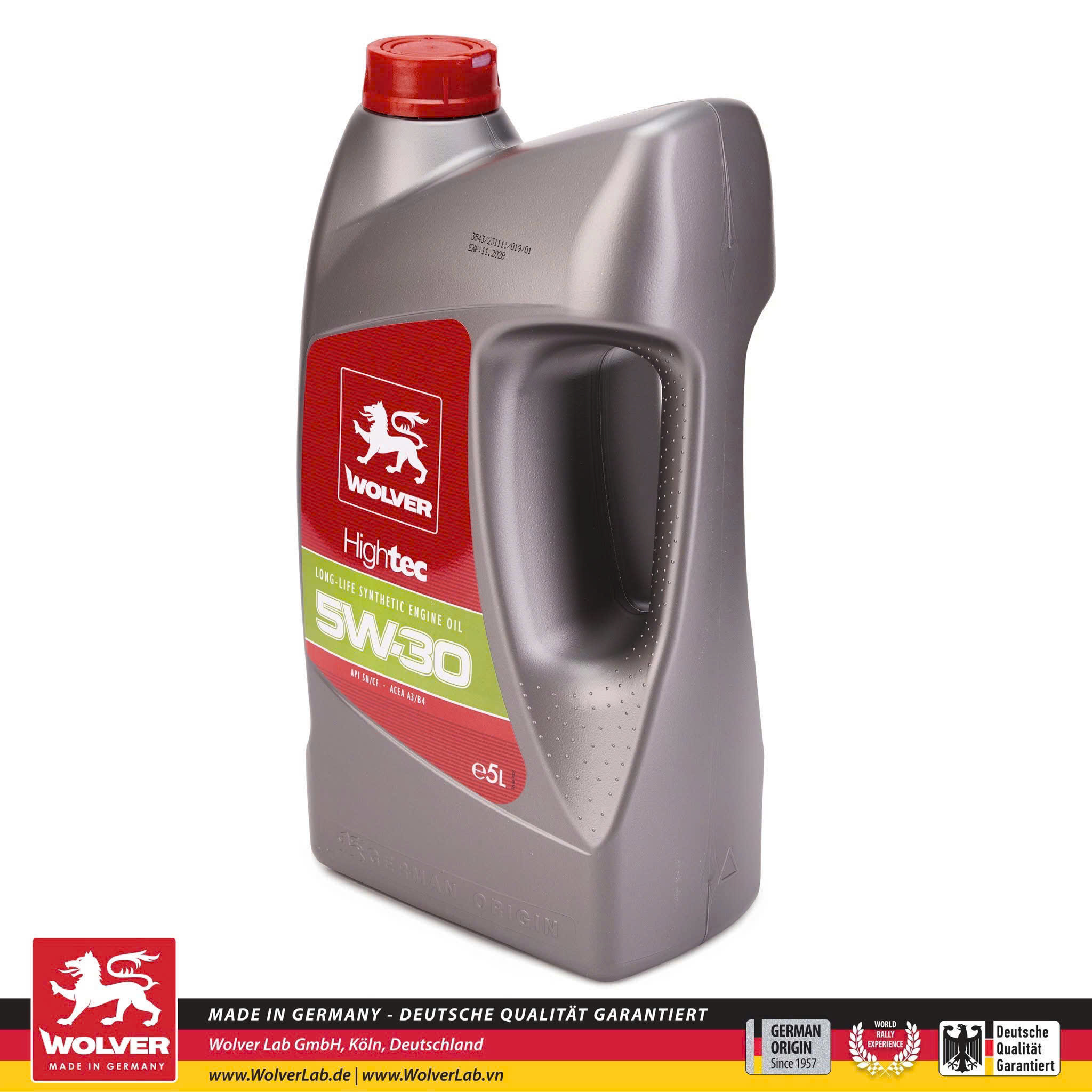 Wolver HighTec 5W30 được cung cấp dạng can 5 lít, tiện lợi cho hầu hết các dòng xe du lịch. Bao bì sản xuất theo tiêu chuẩn châu Âu, nắp kín an toàn, hạn chế rò rỉ trong quá trình vận chuyển.