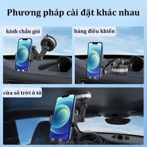 Giá đỡ điện thoại ô tô gắn taplo, kính ô tô hoặc bàn làm việc, kẹp diện thoại cốc hút xoay đa năng 360 độ