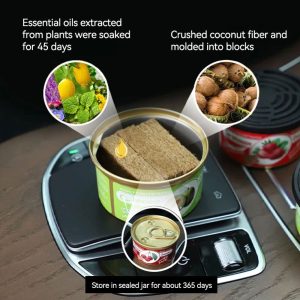 Chất liệu thân thiện với môi trường: Được làm bằng cách chiết xuất tinh dầu từ thực vật, ngâm trong 45 ngày và ép xơ dừa nghiền thành khối rắn.