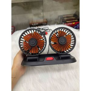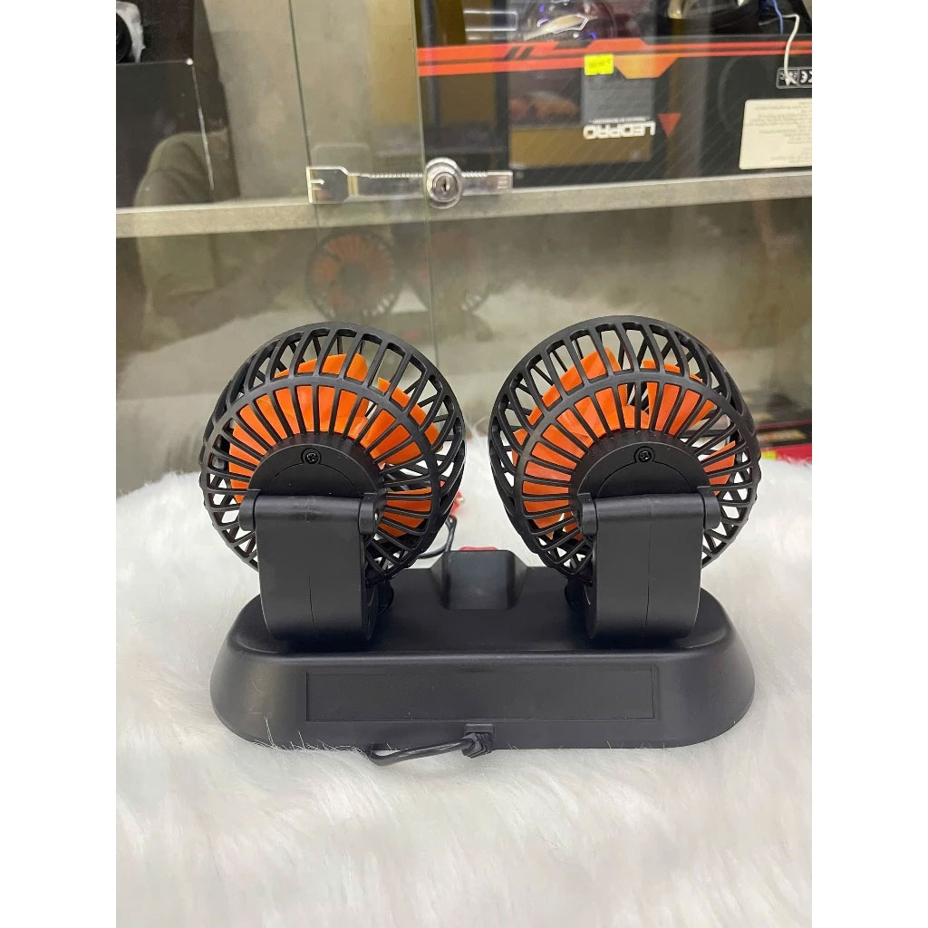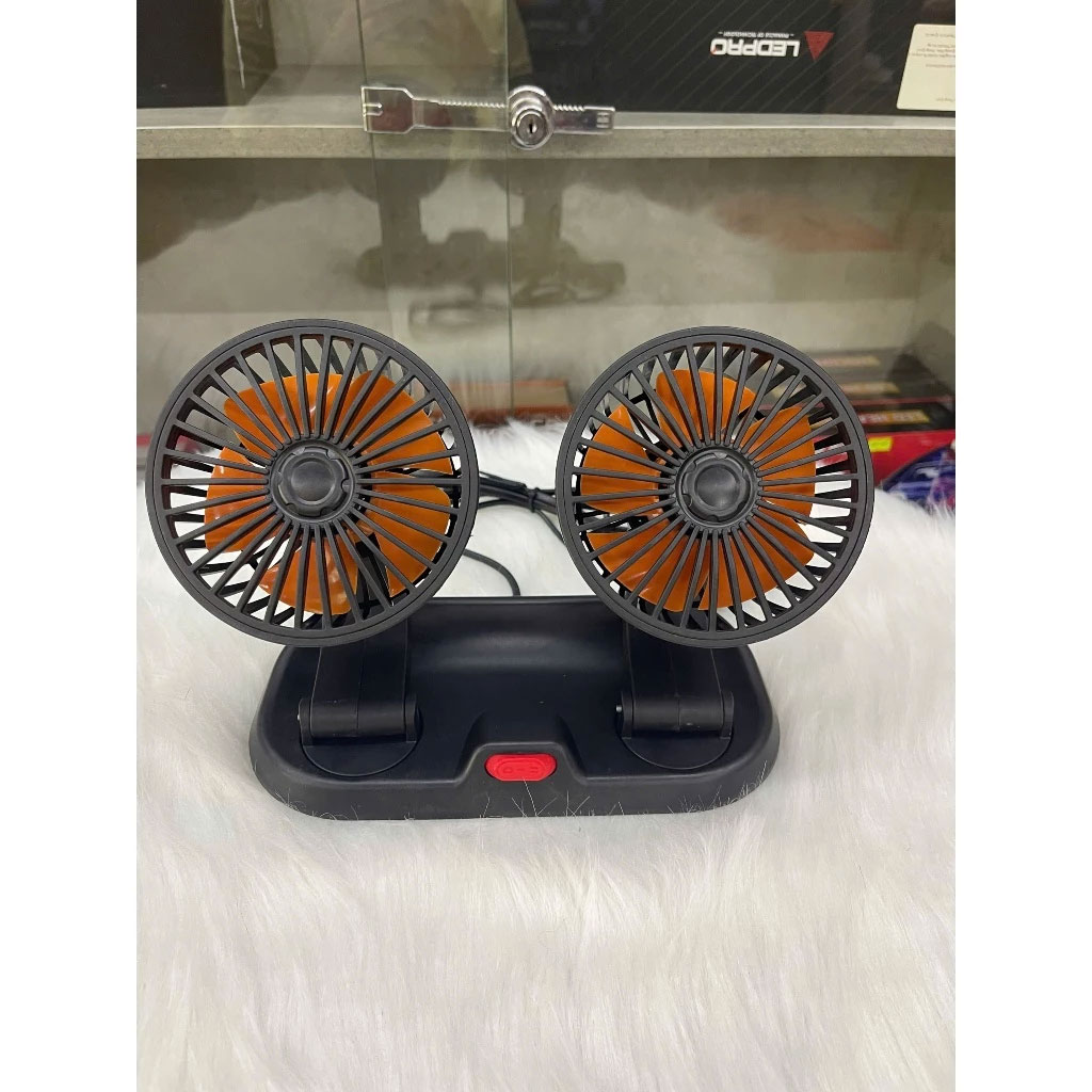 Quạt mini đôi trên xe ô Tô 2 đầu xoay 360 thông minh độ nhỏ gọn cực mát 12V/24V