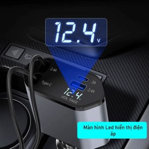 – Hai cổng lig – type c, linh hoạt co dãn: Bộ sạc nhanh trên ô tô có đi kèm với cổng lig và type C và có thể kéo dài hoặc co giãn thoải mái, giúp bạn sạc được nhiều thiết bị đồng thời.