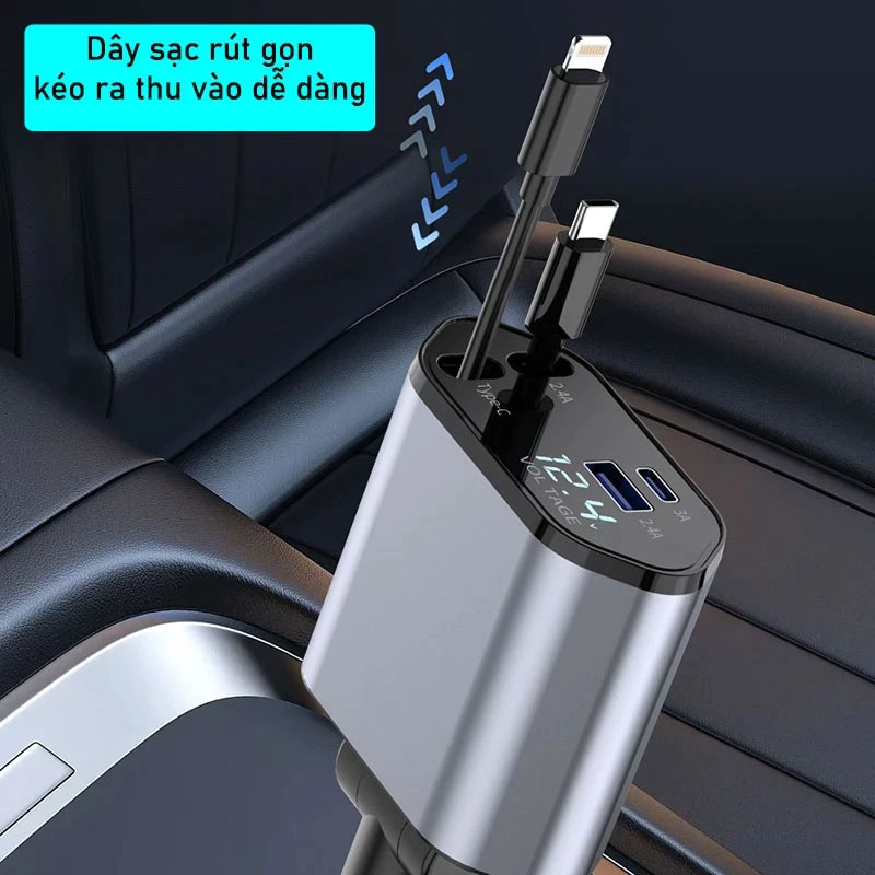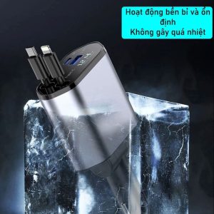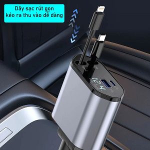 – Thiết kế linh hoạt, thu gọn dễ dàng: Tẩu sạc nhanh được thiết kế với cáp sạc dữ liệu linh hoạt và có thể thu vào và mở rộng lên tới gần 1m. Tính năng này giúp người dùng có thể điều chỉnh độ dài dây sạc phù hợp với nhu cầu, đảm bảo có thể sử dụng thiết bị một cách thoại mái trong khi sạc.